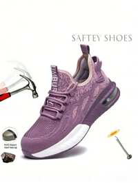 Women's Steel Toe Safety Shoes, Anti-Smashing Function, Air Cushion Sole, Breathable Upper, Light Purple, Suitable For Work, Lightweight And Comfortable. Steel Toe Shoes, Outdoor Sports Shoes, Women's Hiking Shoes, Anti-Smashing And Anti-Puncture Outdoor Work Boots, Industrial Construction Warehouse Anti-Collision Work Protective Shoes. Suggest Ordering One Size Down.