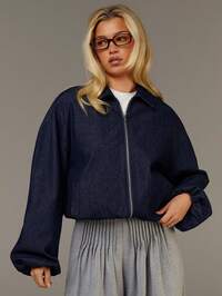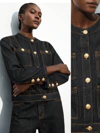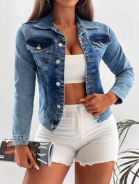 Happy Girl Fashionable Denim Jacket, Versatile For Spring/Summer, Suitable For Holiday, School, Vacation, Daily Wear, Birthday Party, Travel, Stage Performance, Airport Outfit, Featuring Pearl Decor, Lantern Sleeves, Y2K Aesthetic, For Teenage Girls & Women