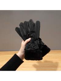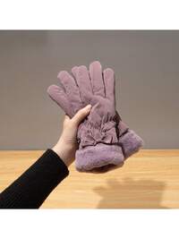 1pc Women's Warm Fleece Gloves - Fashion Bow Decor Fleece Touchscreen Gloves For Winter