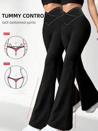 Women's High Waist Tummy Control Yoga Pants, Solid Color Opaque, Excellent Elasticity, Suitable For Training, Track & Field, Running, Cycling, Yoga, Pickleball, Hiking, Gym Workout And Daily Wear, Women's Sports Leggings, Ribbed