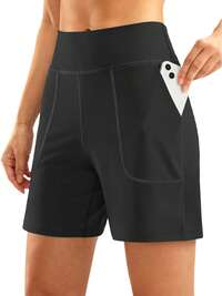 DeerlingWomen's High Waist Seamless Yoga Shorts, Plus Size Available, Made Of Elastic Nylon/Spandex Fabric, Machine Washable, Suitable For Spring, Summer And Autumn, Comfortable Sportswear | Elastic Fabric Shorts, High Waist Shorts, Leggings Shorts, Casual Pants, Outdoor Activities, Tennis, Elegant