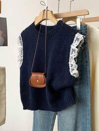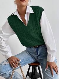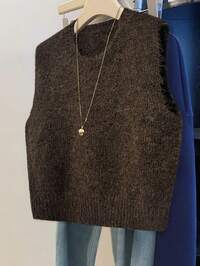 Siren GazeSiren Gaze V-Neck Solid Color Casual Five-Pointed Star Metal Buckle Decor Sweater Vest, Women's Winter Clothes ,Brown , New Year , Party, Christmas ,Thanksgiving ,Graduation, Luxury , Chic, Elegant.,Fall,Fall Clothes For Women