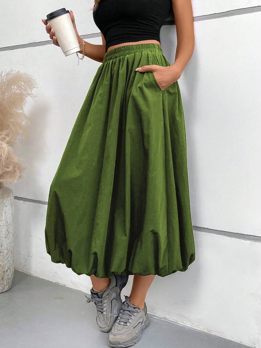 • Women's Bubble Skirt Elastic Waist With Pockets Solid A-Line Long Skirts