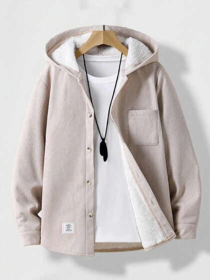 1 stuk casual corduroy capuchonjack voor tienerjongens, overhemdstijl, comfortabel om te dragen in de herfst/winter met een T-shirt