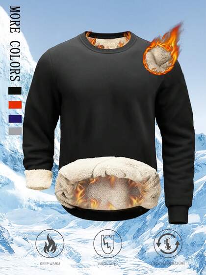 Fleece sweatshirt voor heren, casual, winddicht, dik en warm, ronde hals, geschikt voor buitenactiviteiten en sporten, herfst/winter, skiën.
