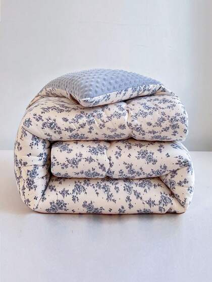 1 dekbedovertrek met bedrukt bloemen- en cartoonpatroon, zachte pluche stof, gewatteerd ontwerp, geschikt voor slaapkamer, logeerkamer, alle seizoenen