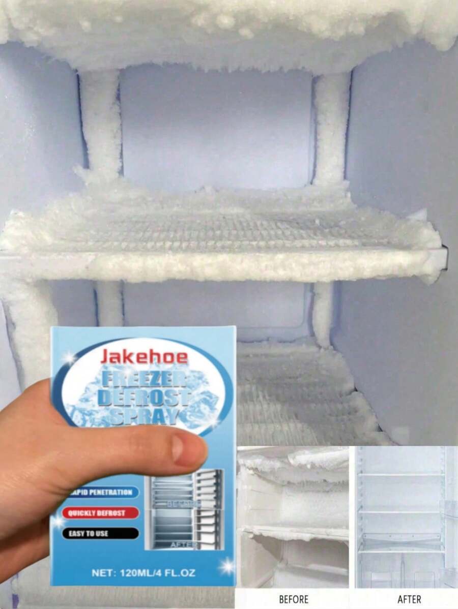 jakehoe 1pc/120ml Refrigerator Defrosting Spray, Effective Deicing, Fast Dissolving Ice And Frost, Anti-Icing, Melting Snow Cleaner, Suitable For Refrigerators, Freezers, Car Windows, Faucets, Easy To Use, Just Spray, Random Delivery Of New And Old Models