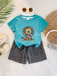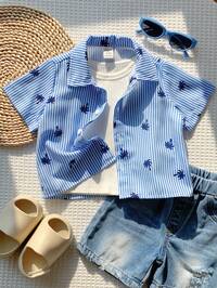 SHEIN 2pcs/Set Unisex Baby Casual Striped Short Sleeve Polo Shirt, Suitable For Birthday Party, Rave, Evening Party, Performance, Wedding, Baby Shower, Christening, 1st Birthday Celebration, Wedding Guest, Baby Shower Christening Outfit